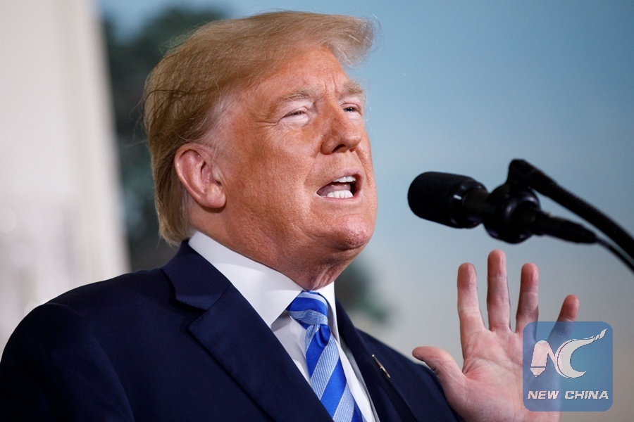 U.S. President Donald Trump delivers a speech at the White House in Washington D.C., the United States, on May 8, 2018. U.S. President Donald Trump said that the United States will withdraw from the Iran nuclear deal, a landmark agreement signed in 2015. (Xinhua/Ting Shen)