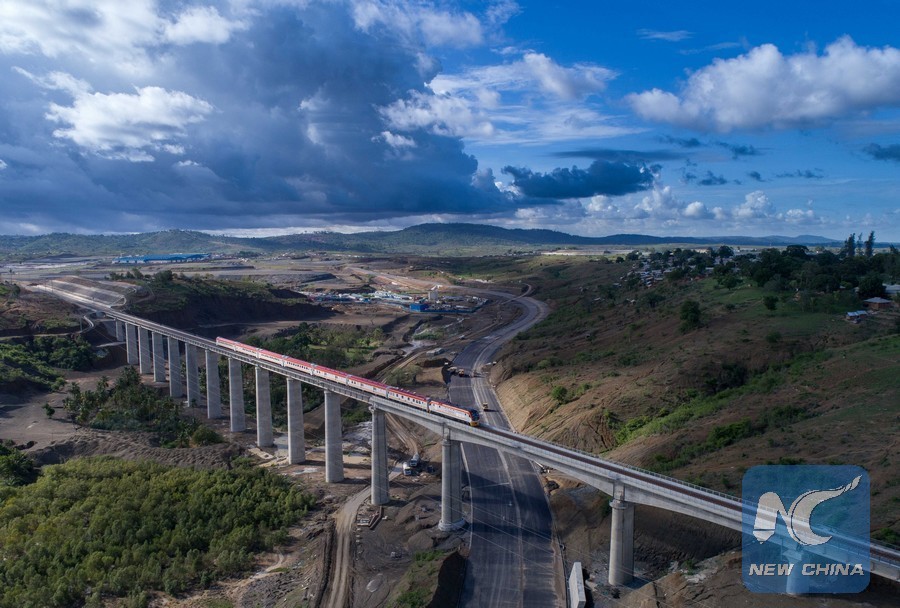 File photo taken on May 12, 2017, shows a section of the Mombasa-Nairobi Standard Gauge Railway (SGR), which began operation in 2017. (Xinhua/Chen Cheng)