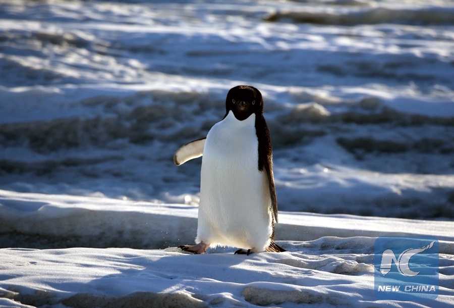 Photo taken on Dec. 9, 2017 shows a penguin at Inexpressible Island in Terra Nova Bay of the Ross Sea in Antarctica. (Xinhua/Bai Guolong)