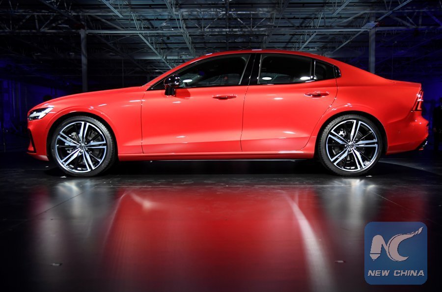 A new Volvo S60 model sedan is displayed at the opening ceremony of Volvo Cars new plant in Charleston, South Carolina, the United States, June 20, 2018. Auto manufacturing giant Volvo Cars opened its first North American plant here Wednesday. (Xinhua/Yang Chenglin)