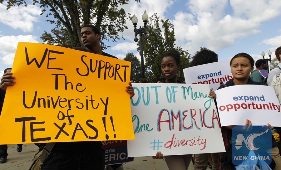 Students calling for diversity protest outside the U.S. Supreme Court in Washington D.C., the United States, on Oct. 10, 2012. REUTERS Photo)