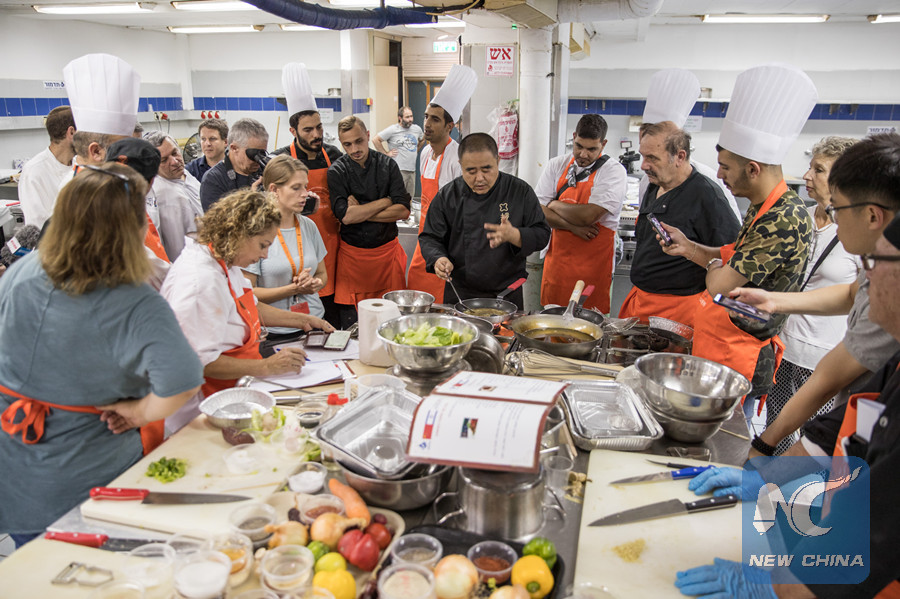 JERUSALEM, July 6 (Xinhua) -- In a hot and steamy kitchen in the coastal Israeli city of Herzliya, a group of Israeli cooks huddled around Zhao Bin, a prominent Chinese chef, who explained in detail how to make a traditional Chinese dish: fried meatballs.