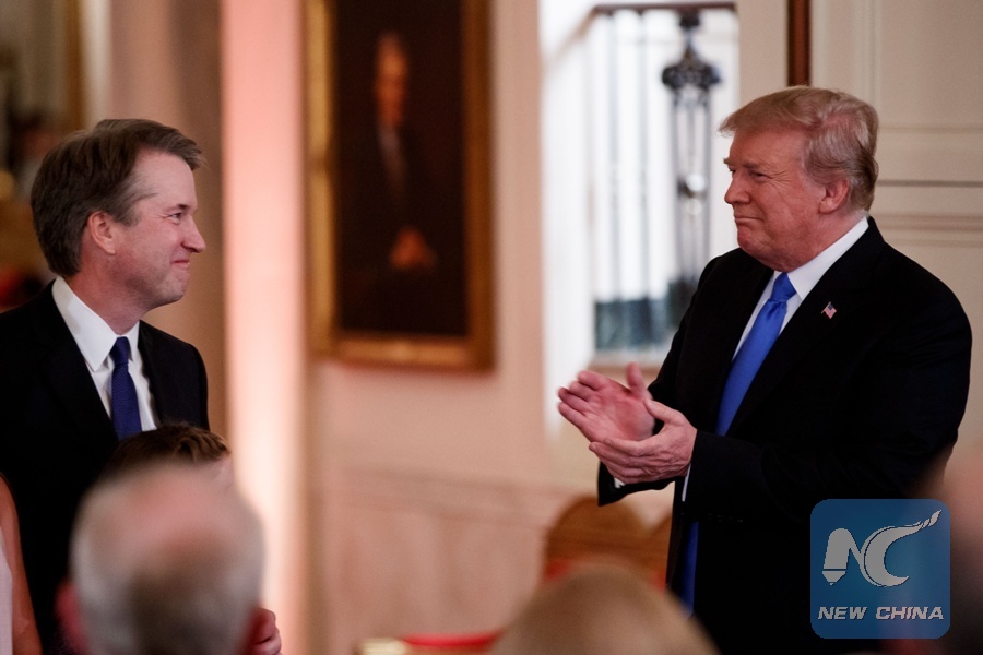 WASHINGTON, July 9 (Xinhua) -- U.S. President Donald Trump ended days of a self-imposed suspense by nominating conservative federal appeals court judge Brett Kavanaugh to the country's Supreme Court.