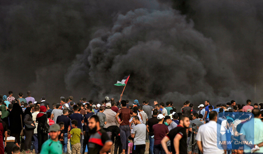 GAZA, July 14 (Xinhua) -- Tension between Israel and Hamas-led military groups in the Gaza Strip escalated on Saturday and may lead to a large-scale confrontation as the two sides have been exchanging fire since Friday night.