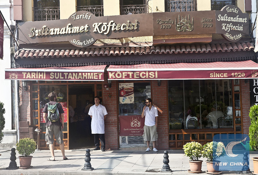 The exterior of the meatball restaurant Sultanahmet Koftecisi at Sultanahmet Square in Istanbul, Turkey, shot on July 31, 2018. (Xinhua/Zeynep Cermen)