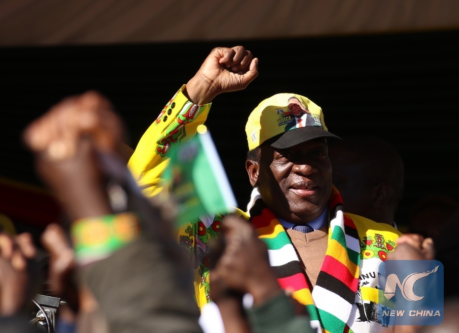 Zimbabwean President Emmerson Mnangagwa attends a rally in Marondera, Mashonaland East Province, Zimbabwe, on July 21, 2018. (Xinhua/Shaun Jusa)