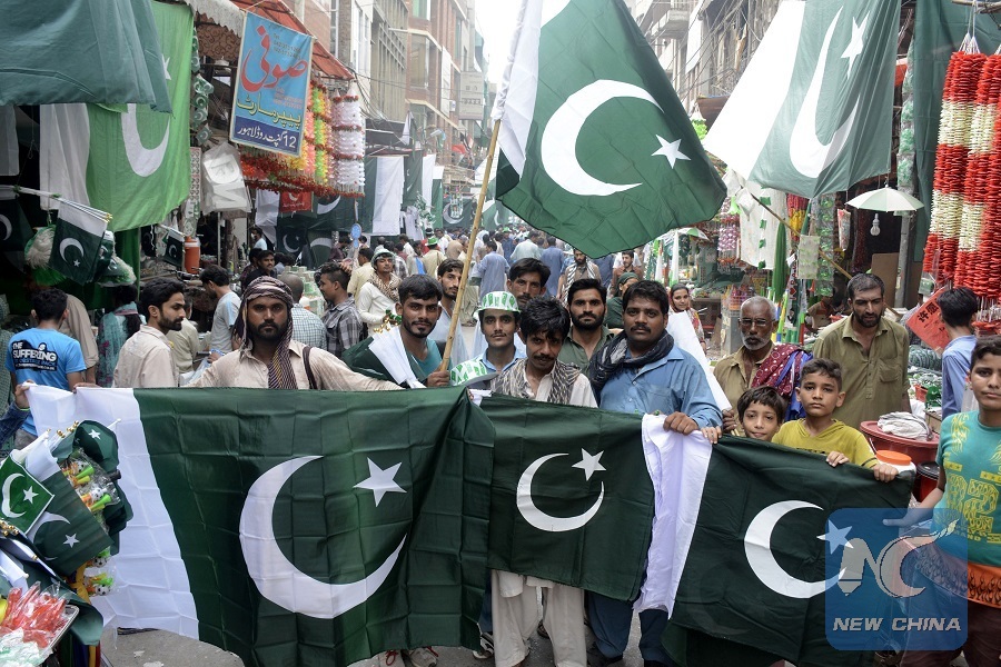 ISLAMABAD, Aug. 13 (Xinhua) -- As Independence Day draws near, the hot and humid weather of Pakistan has not deterred the nation's patriotic zest as markets are flooded with children, elders and youngsters busy finalizing their preparations to celebrate the day on Aug. 14.
