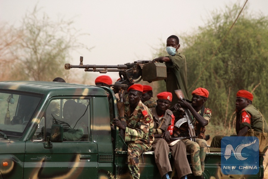File photo shows Sudan People's Liberation Army (SPLA) beef up security at Adar oilfield, South Sudan, March 21, 2017. (Xinhua/Gale Julius)