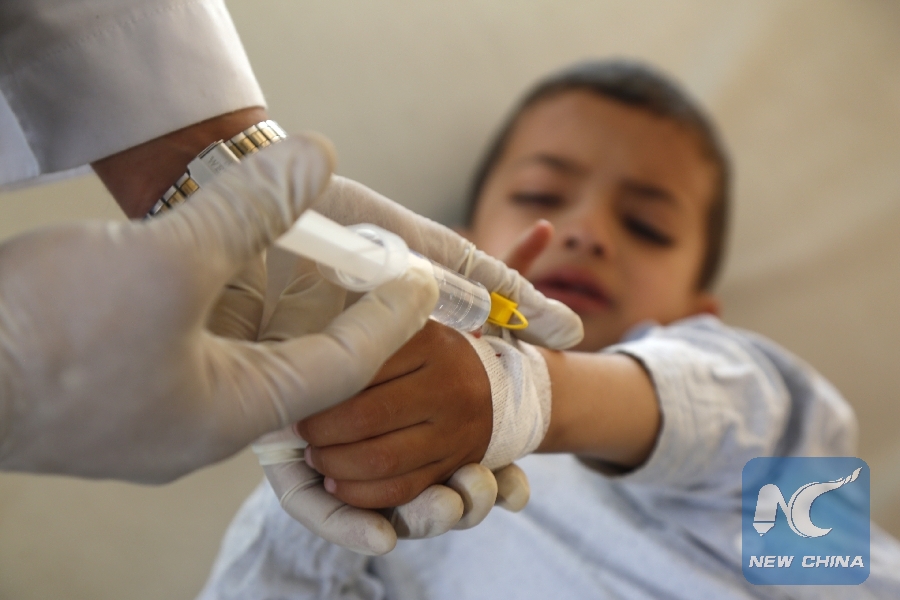 SANAA, Sept. 3 (Xinhua) -- Fear of a possible third deadly wave of cholera is rising in Yemen, as a public hospital in Sanaa is receiving over 60 suspected cases of the epidemic each day, mostly children.