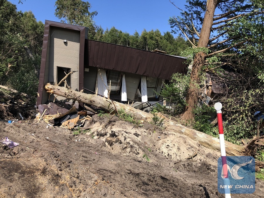 Photo taken on Sept. 6, 2018 shows a damaged house after an earthquake in the town of Atsuma, Hokkaido prefecture, Japan. (Xinhua/Deng Min)
