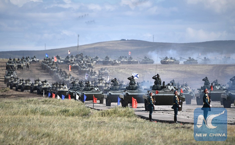 MOSCOW, Sept. 13 (Xinhua) -- The Russian Armed Forces have shown their readiness to successfully withstand potential military threats, Russian President Vladimir Putin said Thursday, after observing a series of drills involving hundreds of thousands of troops.