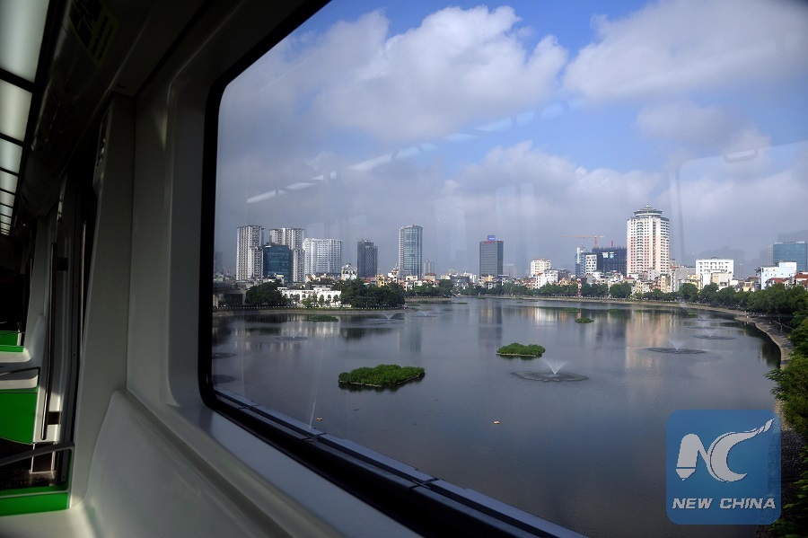 Photo taken in the carriage of Vietnam's first urban railway shows a landscape of Hanoi,Vietnam, on Sept. 20, 2018. (Xinhua/Ngo Minh Tien)