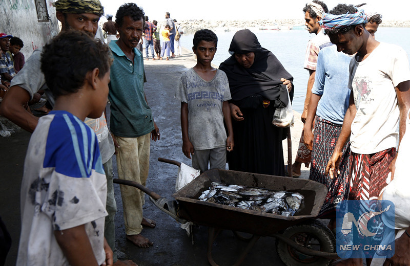 HODEIDAH, Yemen, Sept. 29 (Xinhua) -- Fishermen in the Yemen's port city of Hodeidah have been faced with a difficult choice each morning: either to keep watching their children who are at risk of starving to death or to go fishing under fears of the heavy airstrikes.