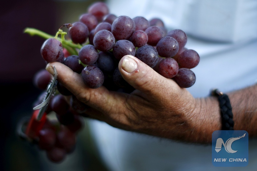 A farm worker picks table grapes in Maricopa, California, the United States, July 24, 2015. (REUTERS Photo)