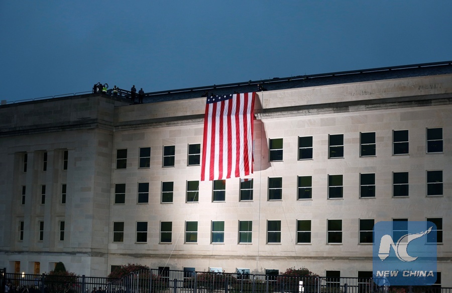 File Photo: The U.S. flag is unfurled at sunrise as part of the 17th annual September 11 observance ceremony at the Pentagon in Washington, U.S., Sept. 11, 2018. (Xinhua/REUTERS)