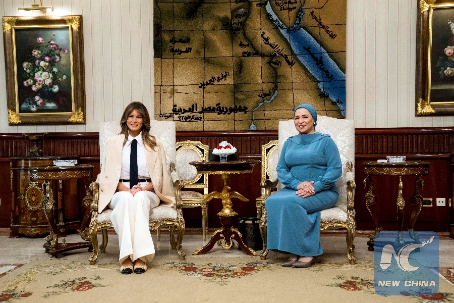 CAIRO, Oct. 6 (Xinhua) -- U.S. first lady Melania Trump arrived in Cairo on Saturday and was received by her Egyptian counterpart Entissar Amer al-Sisi, the Egyptian state TV reported.