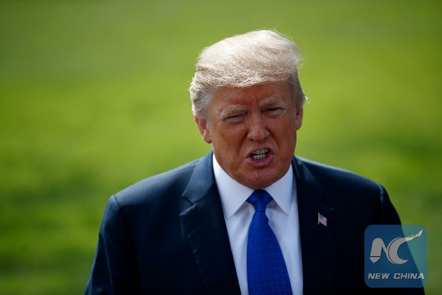 File Photo: U.S. President Donald Trump speaks to reporters before leaving the White House in Washington D.C., the United States, on Oct. 2, 2018. (Xinhua/Ting Shen)