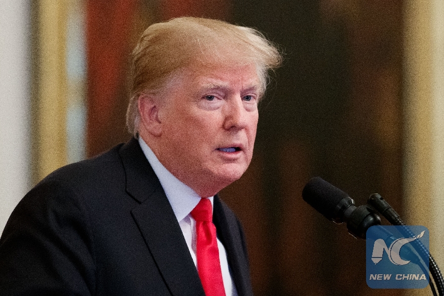 File Photo: U.S. President Donald Trump speaks at an event on opioid abuse at the White House in Washington D.C., the United States, on Oct. 24, 2018. (Xinhua/Ting Shen)