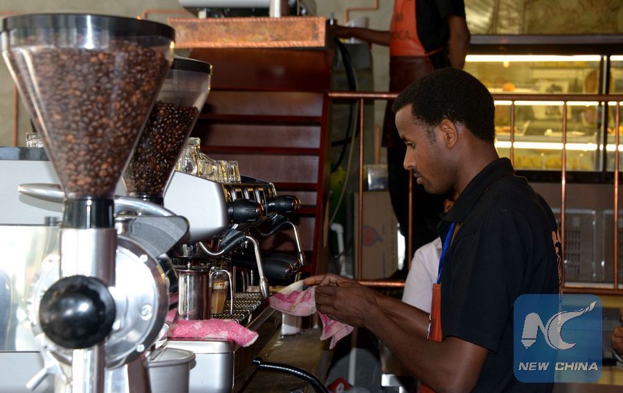 Photo of the TO.MO.CA coffee house in Addis Ababa, capital of Ethiopia. (Xinhua/Wang Shoubao)