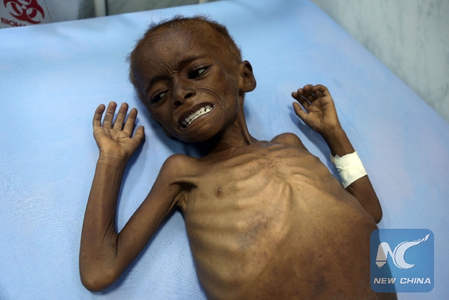 File Photo: A malnourished Yemeni child receives treatment at a hospital in the Yemeni port city of Hodeidah on Dec. 3, 2017. (Xinhua/AFP)