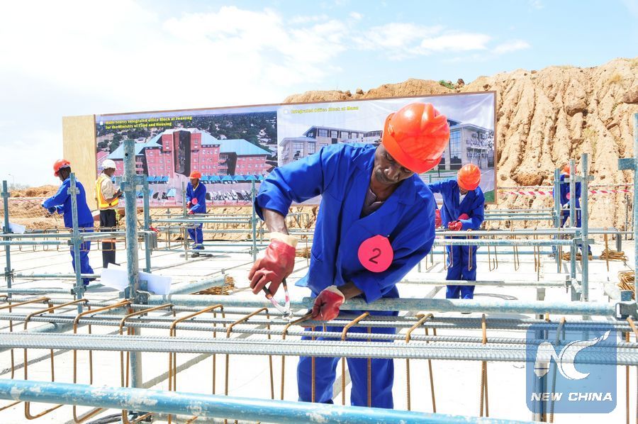 File photo shows a Botswana employee from China's Zhengtai Group participates in the company's annual artisan development expo competitions in Gaborone, the capital city of Botswana on Nov. 26, 2015.(Xinhua/Lyu Tianran)