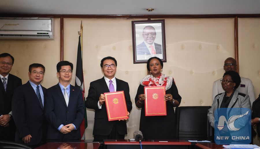 Kenya's education ministry and Chinese Academy of Sciences singed a memorandum of understanding in Nairobi, Kenya, Dec. 13, 2018.(Xinhua/Li Yan)