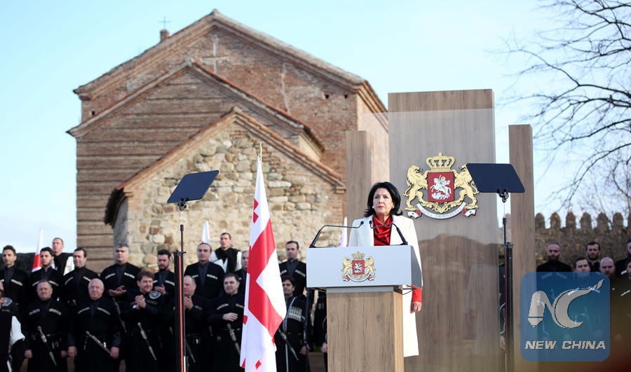 TBILISI, Dec. 16 (Xinhua) -- Salome Zurabishvili was sworn in on Sunday as Georgia's fifth president, also the country's first female president.