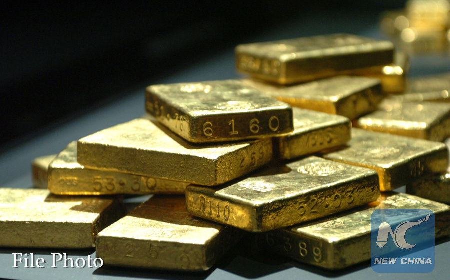 The photo taken on Nov.14, 2006 shows the gold ingots of the Federal Reserve Bank of New York displayed at American Museum of Natural History in New York. (Xinhua/Zhao Peng)