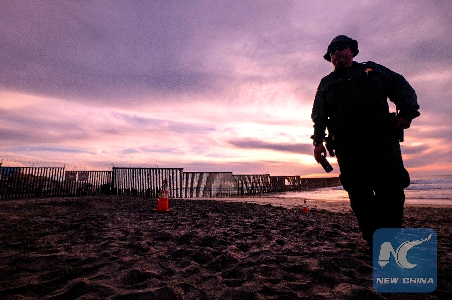File Photo: A U.S. Border Patrol agent stands in front of the border fence that divides the U.S. and Mexico in San Diego, California, the United States, Nov. 17, 2018. (Xinhua/Zhao Hanrong)
