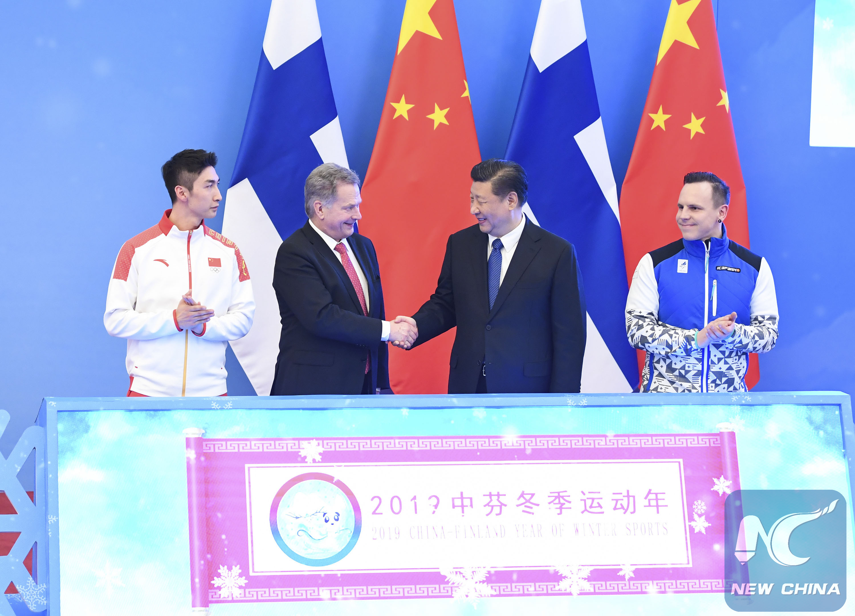 Winter sports cooperation is a highlight of the Finnish president's China trip. On Tuesday evening, Niinisto attended the opening ceremony of the China-Finland Year of Winter Sports 2019, along with Chinese senior officials.