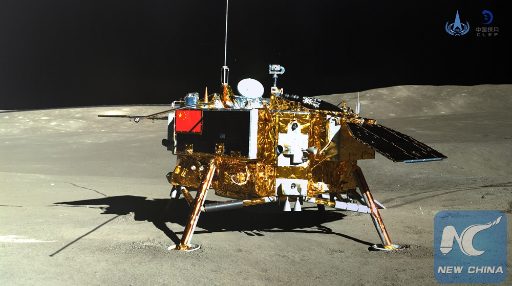 Photo taken by the rover Yutu-2 (Jade Rabbit-2) on Jan. 11, 2019 shows the lander of the Chang'e-4 probe. (Xinhua/China National Space Administration)
