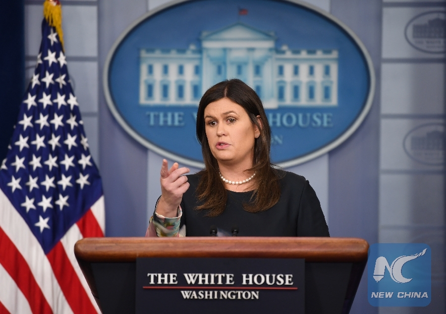 File Photo: White House press secretary Sarah Sanders speaks at a press briefing at the White House in Washington D.C., the United States, Aug. 1, 2018. (Xinhua/Liu Jie)