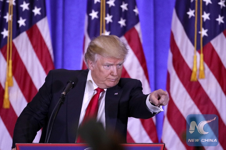 File Photo: U.S. President-elect Donald Trump gestures during a news conference in New York, the United States, on Jan. 11, 2017. (Xinhua/Gary Hershorn)