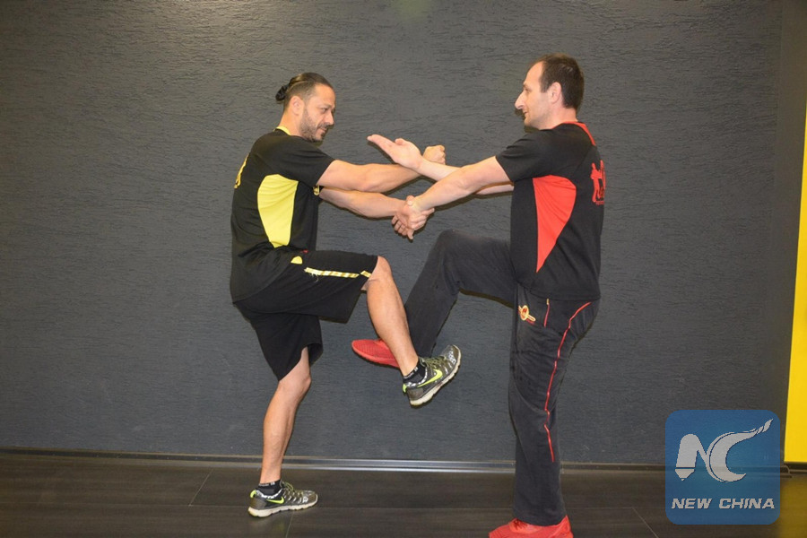 Nehar Eren (L) is practicing martial arts in Ankara, Turkey's capital. (Xinhua photo)