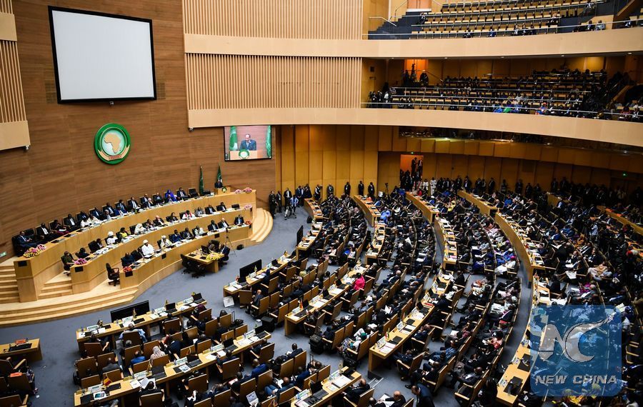 Photo shows the scene of the 32nd African Union (AU) summit of heads of state and government in Addis Ababa, Ethiopia, on Feb. 10, 2019. (Xinhua/Li Yan)