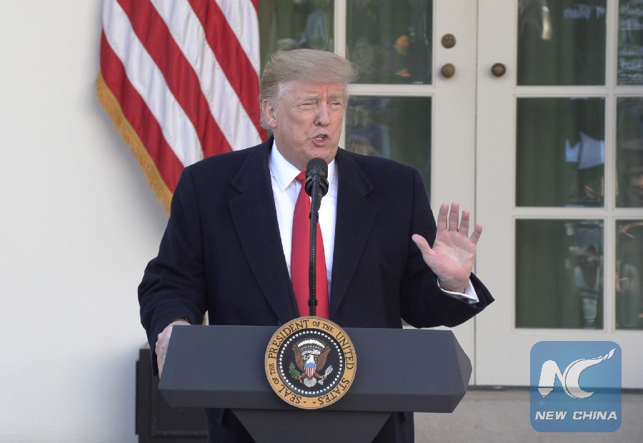 File Photo: U.S. President Donald Trump speaks at the White House in Washington D.C., the United States, on Jan. 25, 2019. (Xinhua/Hu Yousong)