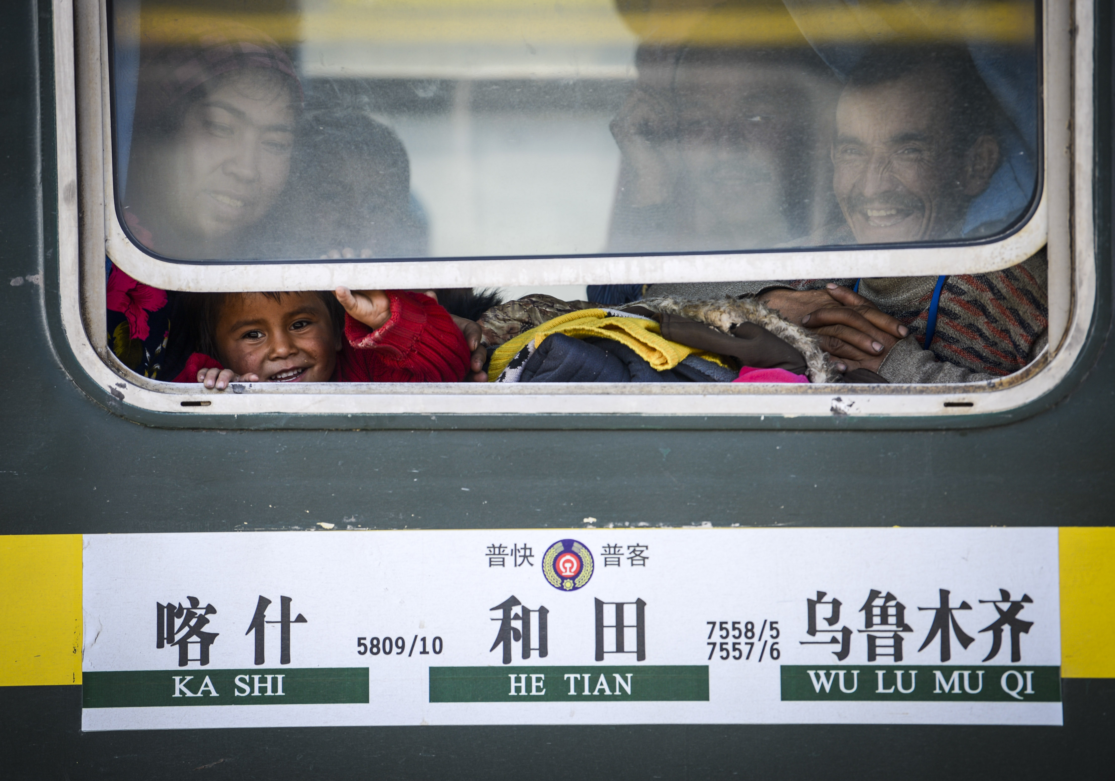 Passengers are seen on the train linking Kashgar and Hotan in northwest China's Xinjiang Uygur Autonomous Region, Nov. 25, 2017. (Xinhua/Zhao Ge)