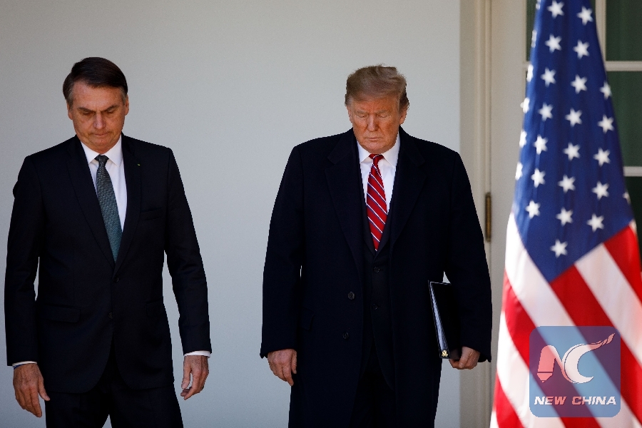 WASHINGTON, March 19 (Xinhua) -- U.S. President Donald Trump on Tuesday met his Brazilian counterpart Jair Bolsonaro at the White House, looking to reset bilateral ties with the country, a major regional player in South America.