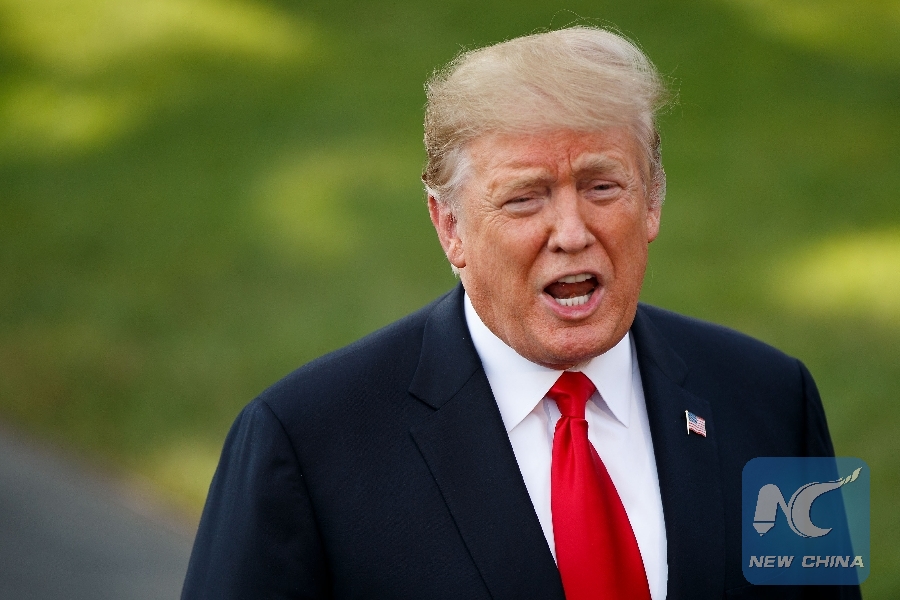 File Photo: U.S. President Donald Trump speaks to reporters before leaving the White House in Washington D.C., the United States, on Oct. 9, 2018. (Xinhua/Ting Shen)