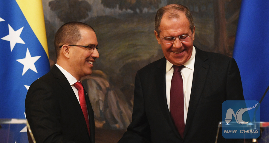 MOSCOW, May 5 (Xinhua) -- Russian Foreign Minister Sergei Lavrov on Sunday reiterated Moscow's solidarity with the people of Venezuela and support for its president Nicolas Maduro, said the Russian foreign ministry.