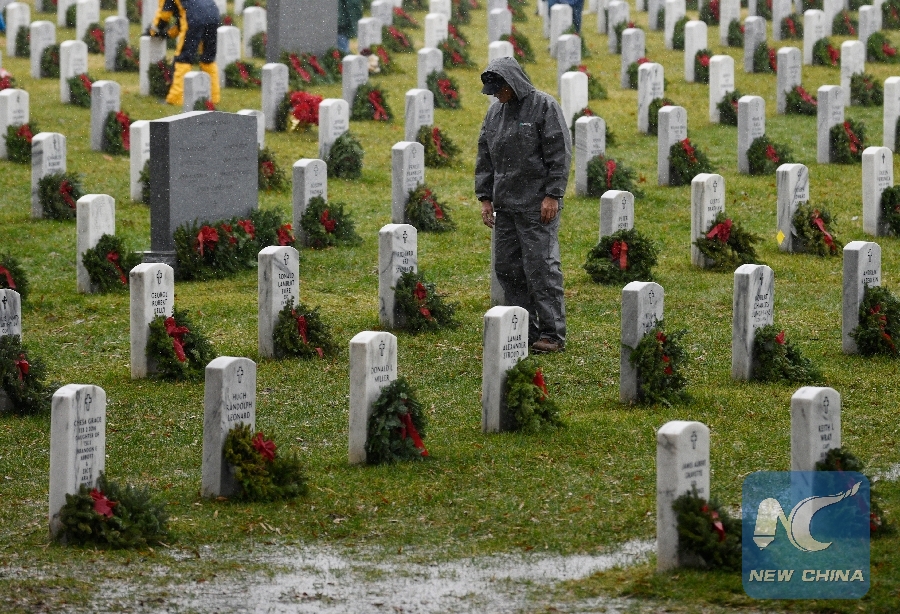 File Photo: A man stands in front of tombstones during a wreath-laying ceremony of Wreaths Across America Day at Arlington National Cemetery in Arlington, Virginia, the United States, on Dec. 15, 2018. (Xinhua/Liu Jie)