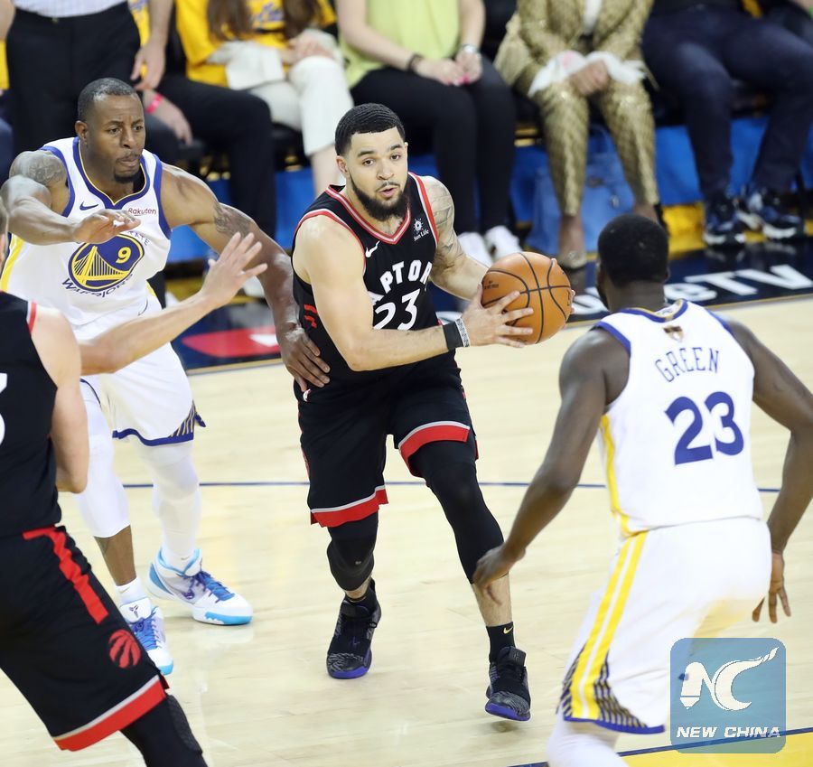NEW YORK, June 11 (Xinhua) -- During the NBA Finals Game 3 between the Toronto Raptors and the Golden State Warriors on June 6, a bizzare but funny scene erupted during the half-time break.