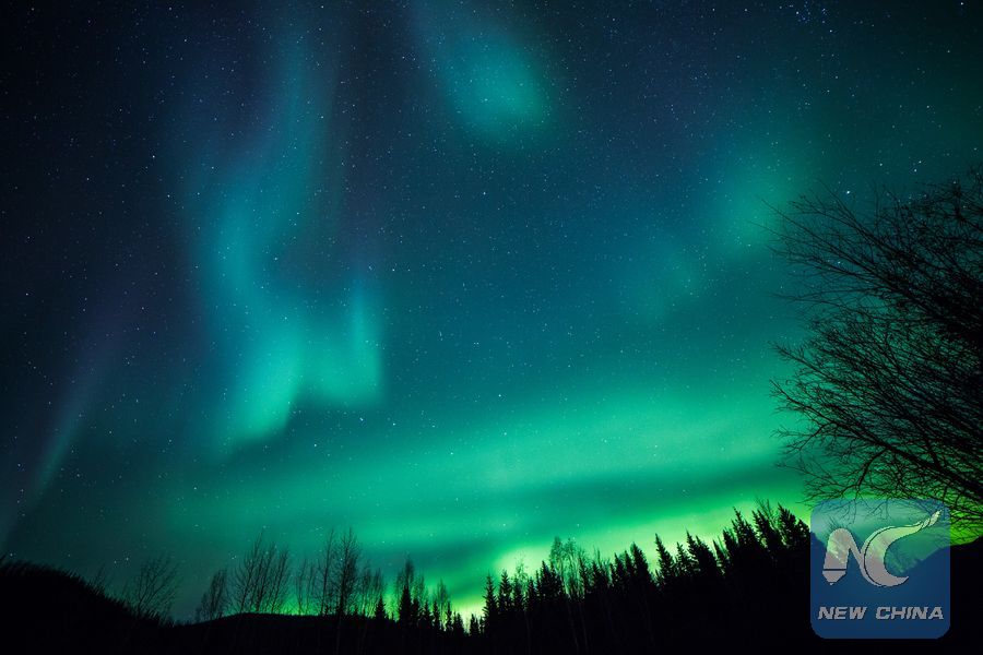 The Aurora Borealis or Northern Lights illuminate the night sky over Chena River State Recreation Area near Fairbanks, Alaska, the United States, on Oct. 5, 2016. (Xinhua/Li Changxiang)