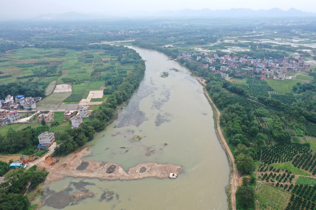 Aerial photo taken on June 29, 2019 shows a bridge under construction near a historical site of the 1934 Battle of Xiangjiang in Quanzhou County, south China's Guangxi Zhuang Autonomous Region. (Xinhua/Zhou Hua)