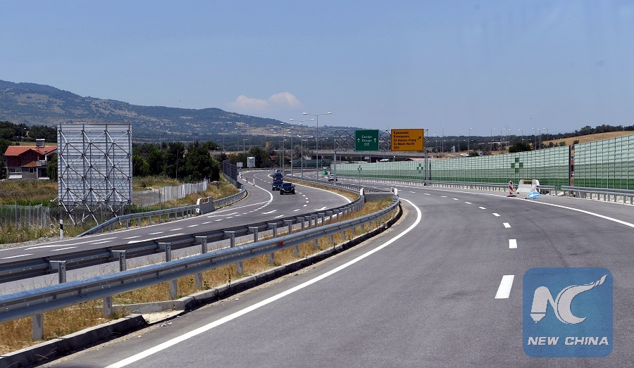 Vehicles move on the highway section Miladinovci-Shtip, which connects North Macedonia's capital Skopje with the eastern part of the country, North Macedonia, July 6, 2019. (Xinhua/Zhang Liyun)