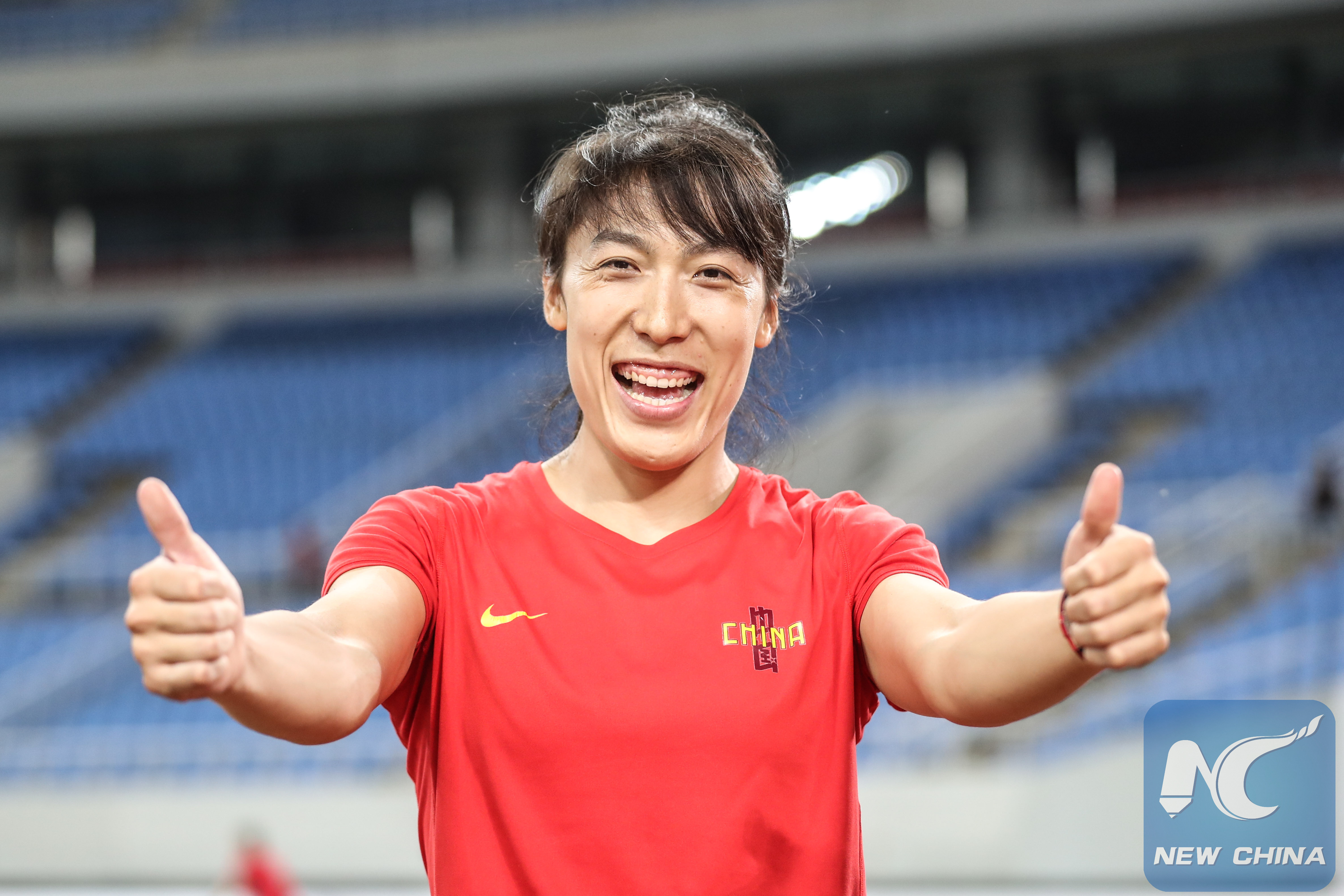 Lv Huihui threw her javelin to an Asian record distance of 67.83 meters at the Chinese Athletics Championships in Shenyang, China on July 11, 2019. (Xinhua/Pan Yulong)