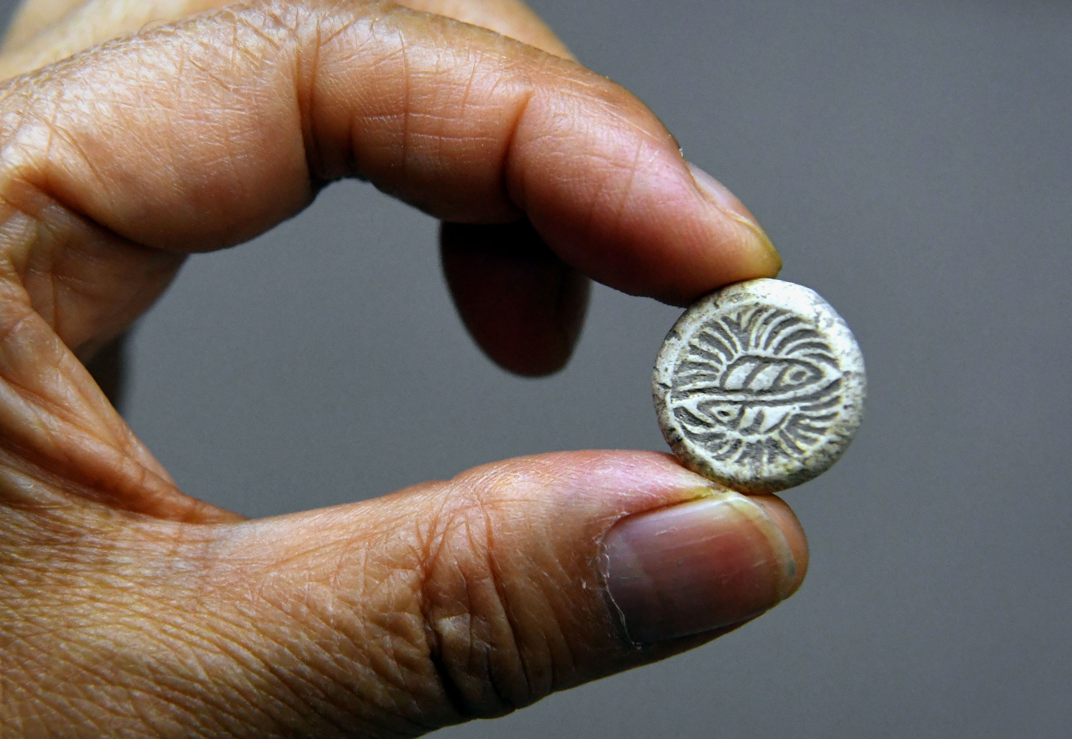 Wang Tongling shows a Go piece at the Go Museum in Luoyang, central China's Henan Province, May 14, 2019. (Xinhua/Li An)