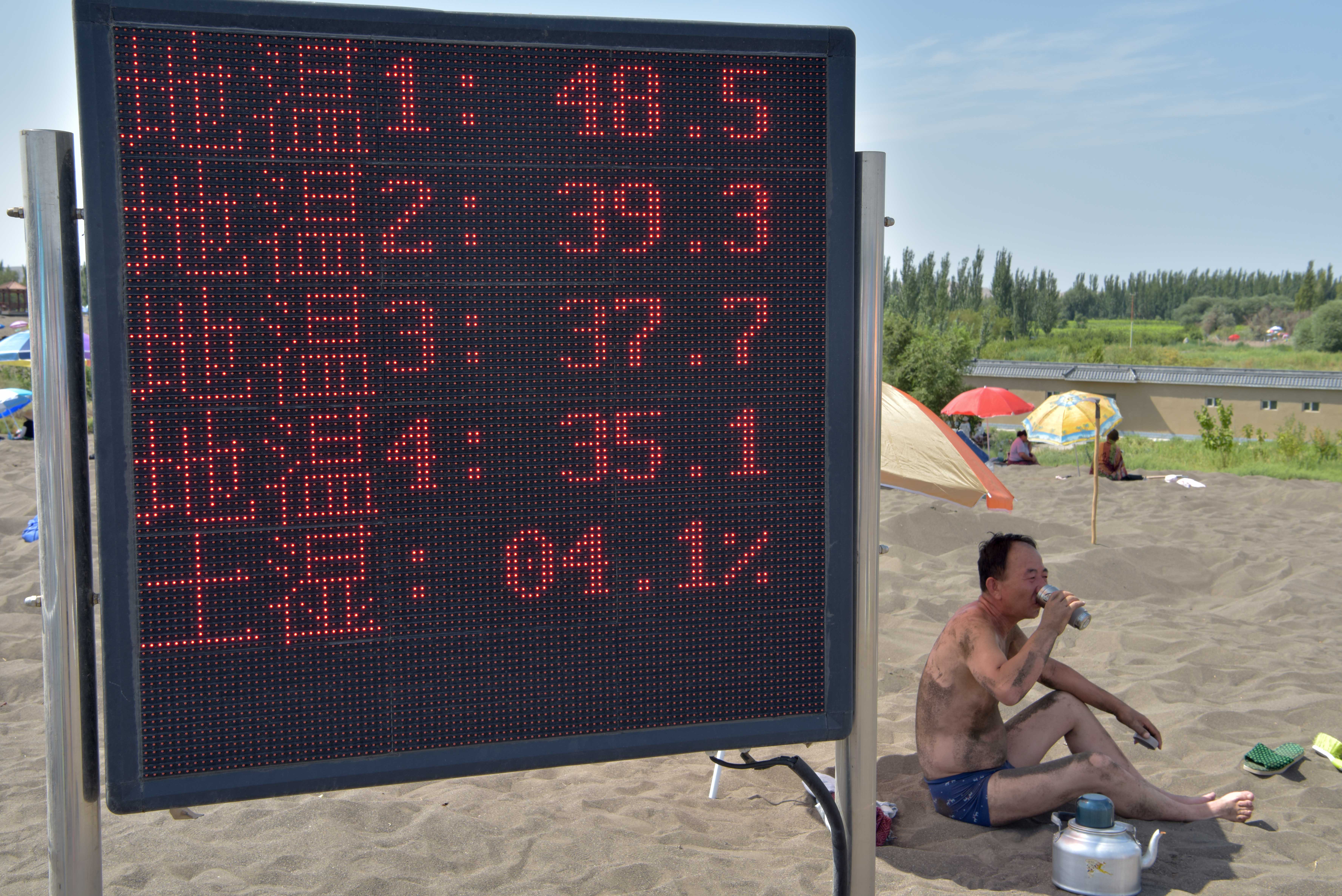 Every year from June to August, the highest temperature in Turpan reaches more than 45 degrees Celsius and the surface temperature of sand dunes could reach to 70 degrees Celsius, which is the best time for sand therapy, a combination of sunbath, heat therapy and massotherapy.