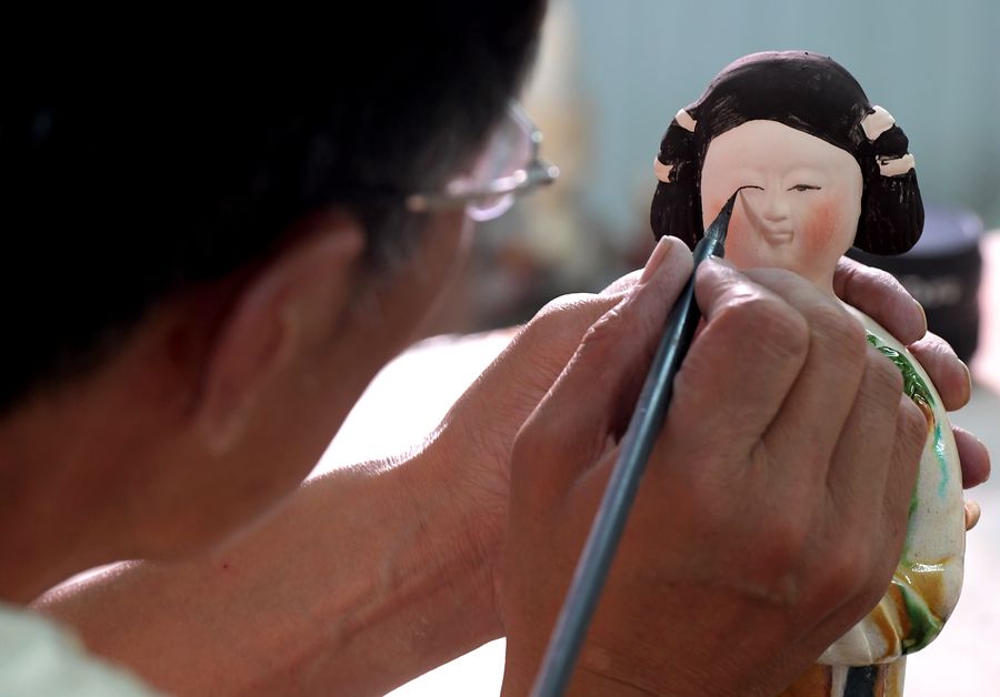 Gao Shuiwang, a 61-year-old master craftsman, has been devoting himself over the past four decades to studying and making fine Tang Sancai. As one of the few who has mastered the essence of making the pottery, Gao earned the title of an inheritor of making Tang Sancai. Some of his creations have not only won awards, but also been collected by about 50 museums at home and abroad.
