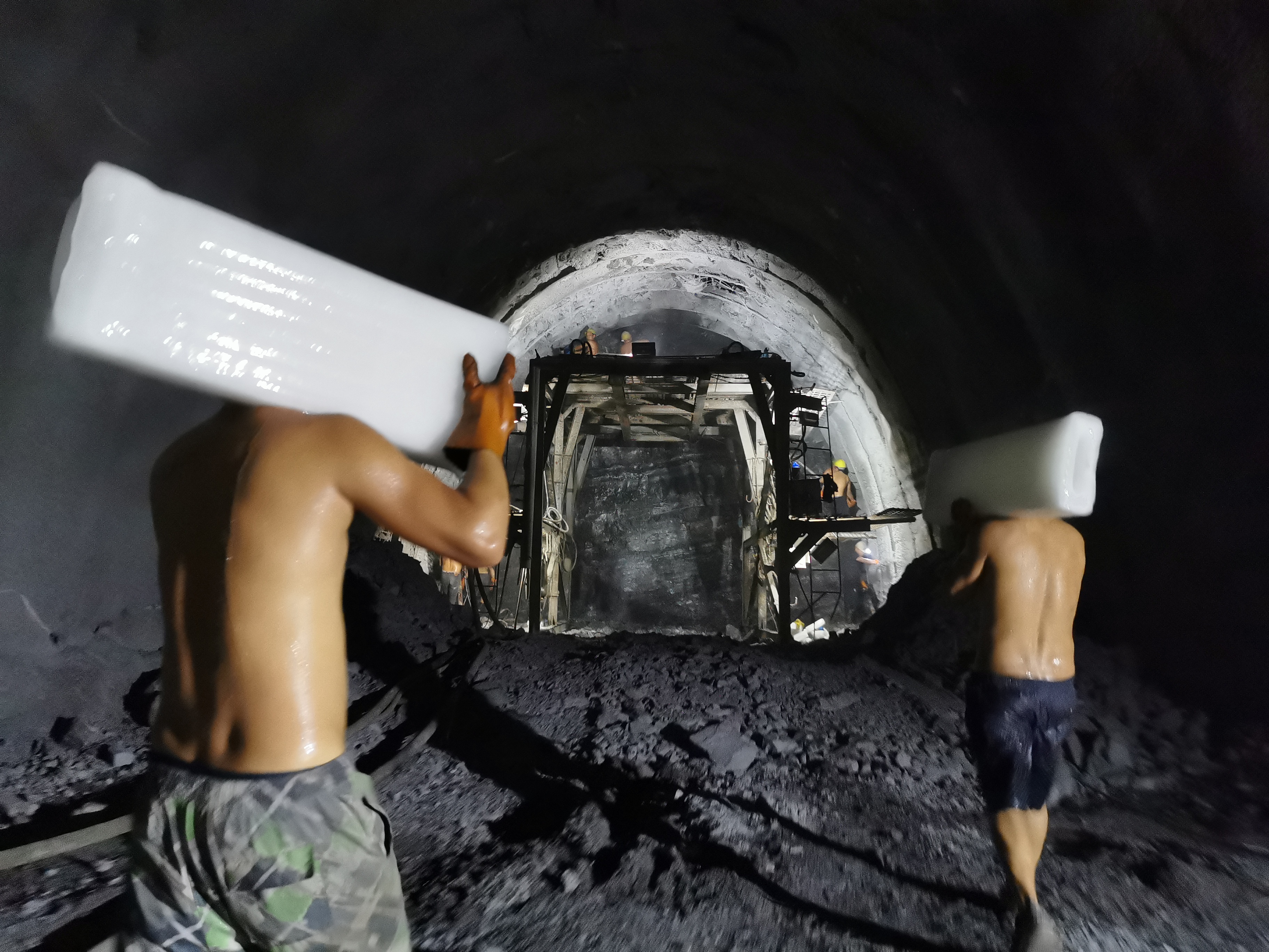 "The happiest thing in this stuffy tunnel is to take a 10-minute rest on the ice pile," Wang Hong said, smearing the sweat off his face. "Without the ice, I really don't know how to continue with the job."